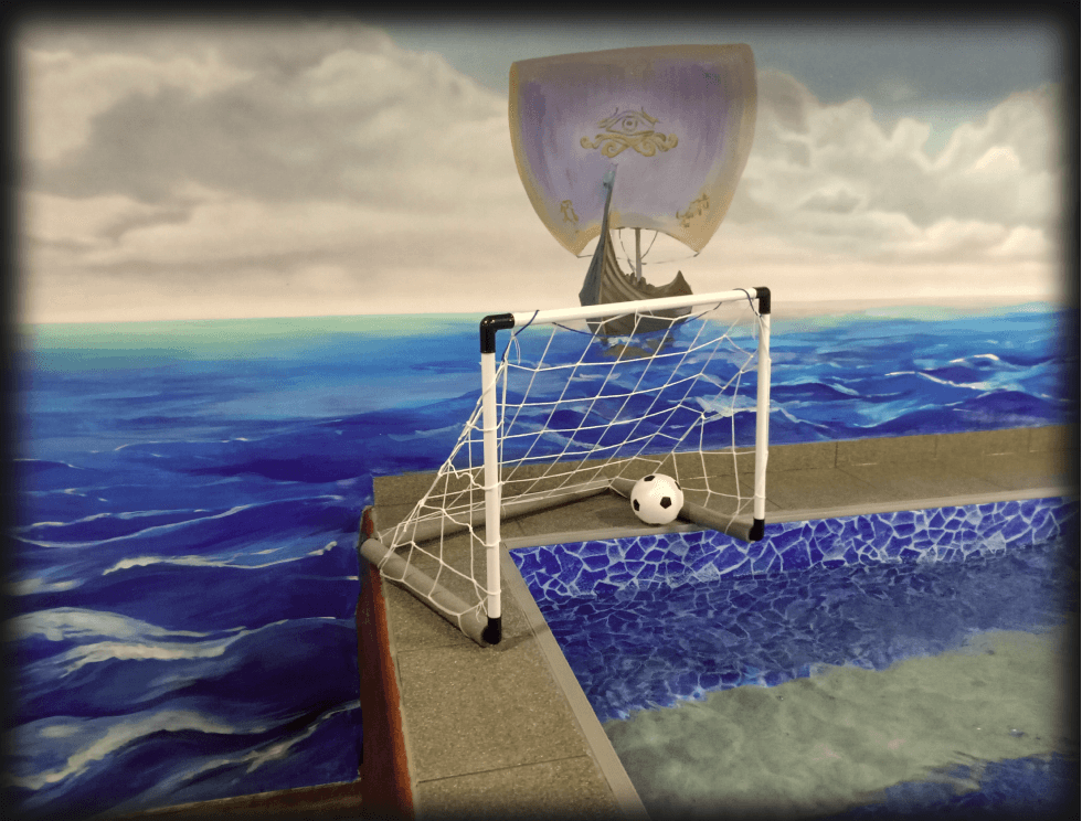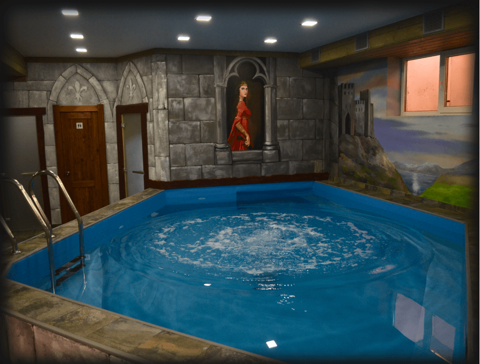 Вы можете спросить у нас мяч для игр в бассейне. В зале «Скандинавия» имеются ворота и мяч для водного поло.